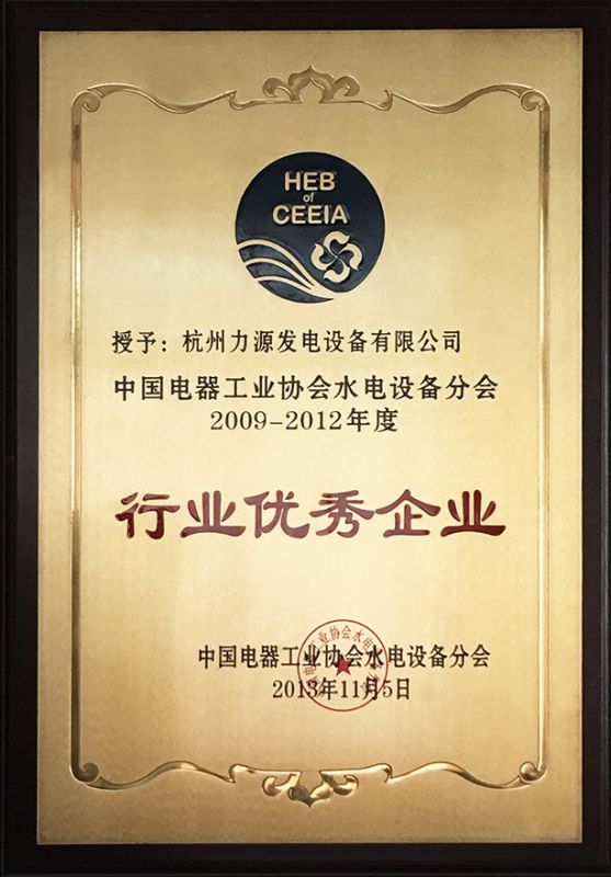 中國電器工業(yè)協(xié)會水電設(shè)備分會2009-2012年度行業(yè)優(yōu)秀企業(yè)